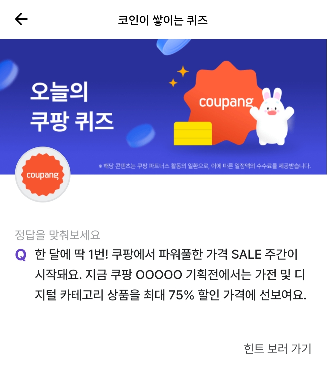 [비트버니] 8월 13일 비트버니 오늘의 퀴즈/ 쿠팡 퀴즈 정답